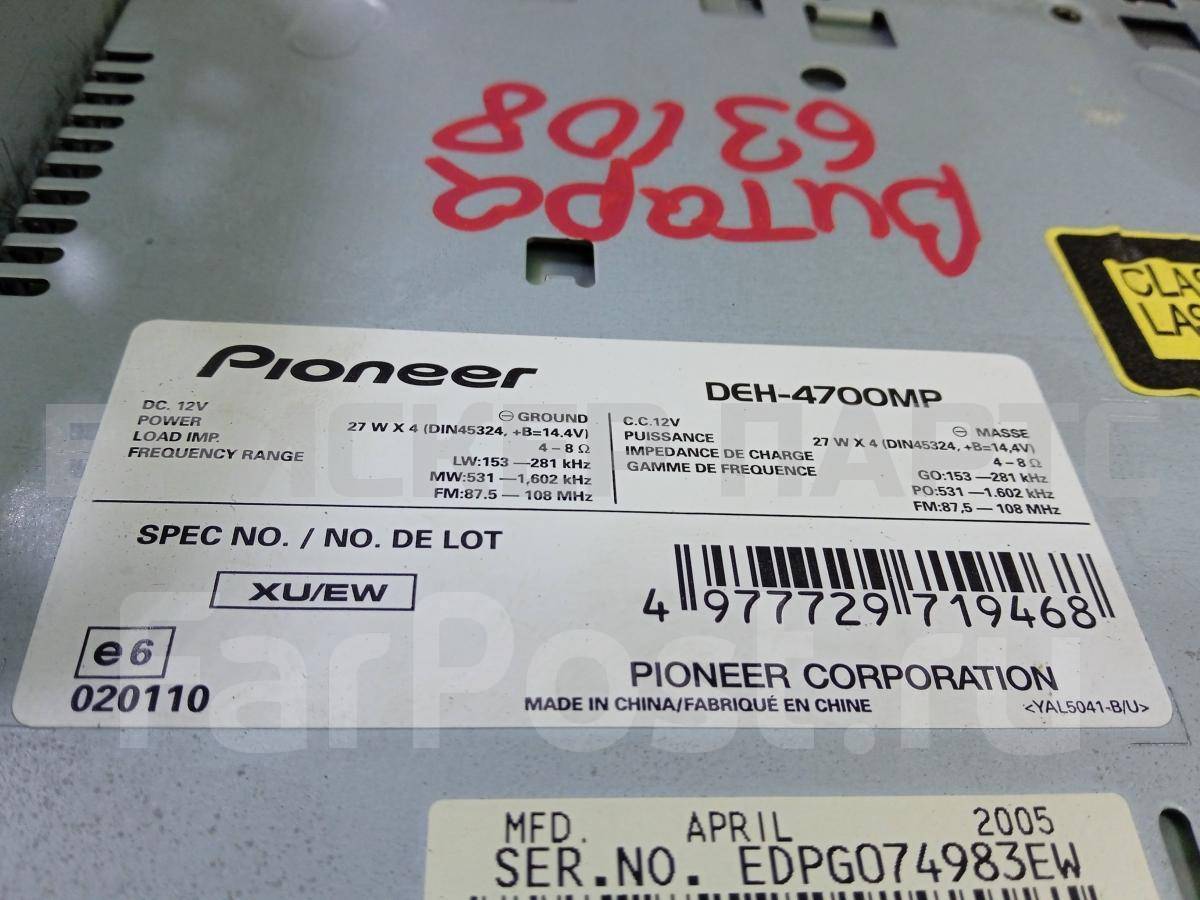 На данной странице нашего каталога представлена деталь «Автомагнитола на Сузуки Витара Гранд Витара 1» , с оригинальным номером DEH4700MP, состояние которой оценено нашими специалистами, как «Нормальное».