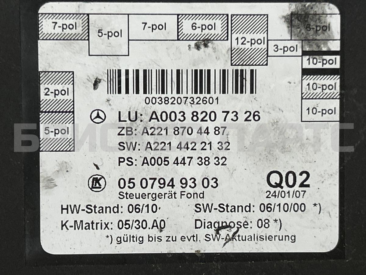 На данной странице нашего каталога представлена деталь «Блок комфорта правый задний на Mercedes (Мерседес) S-класс W221» , с оригинальным номером A0038207326, состояние которой оценено нашими специалистами, как «Нормальное».