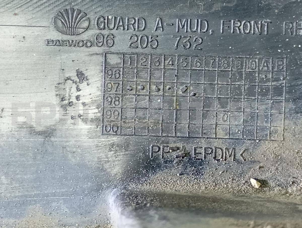 ВНИМАНИЕ! Обновление информации на сайте происходит не сразу! Перед выездом обязательно уточняйте наличие, состояние и цену на Брызговик передний правый на Дэу Леганза 1 поколение V100 для Daewoo Leganza.