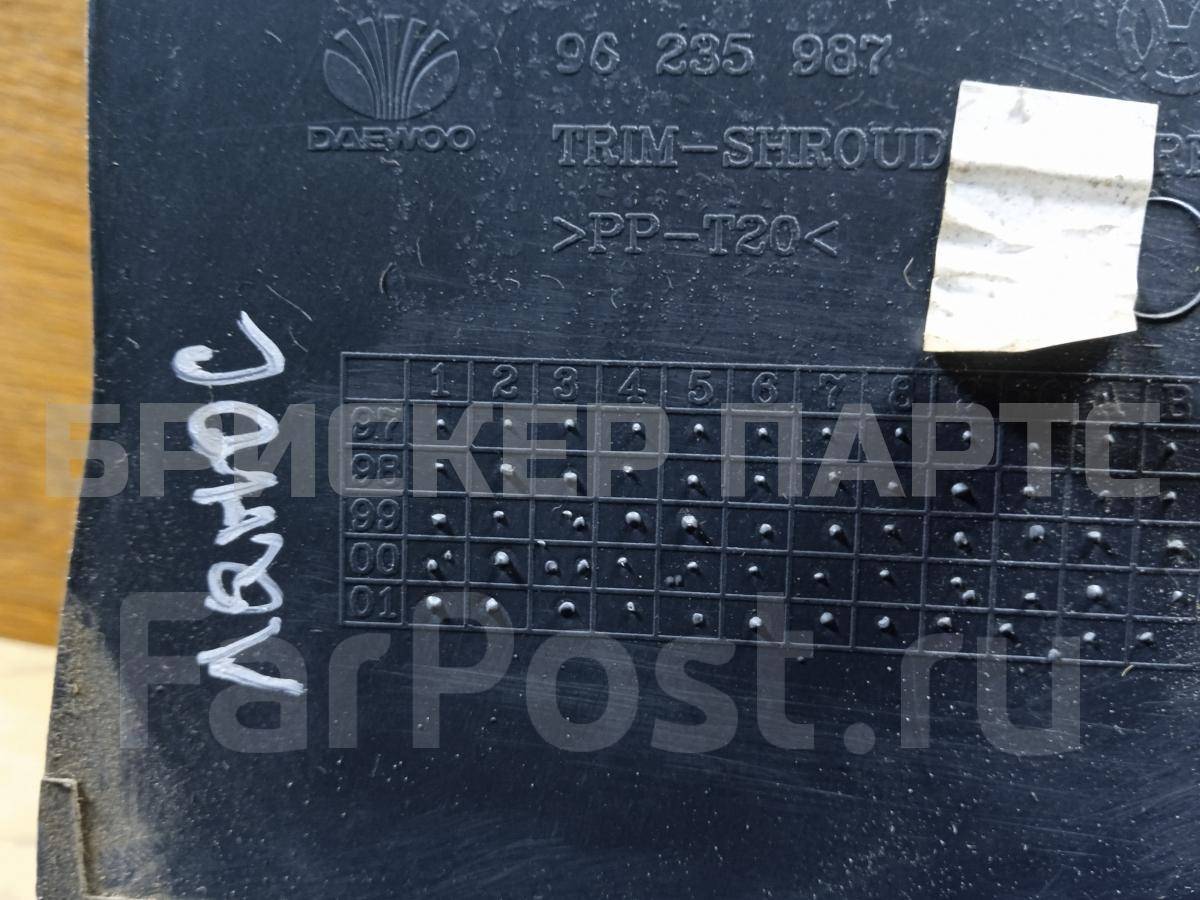 На данной странице нашего каталога представлена деталь «Облицовка передней правой стойки нижняя на Шевроле Ланос» , с оригинальным номером 96235987, состояние которой оценено нашими специалистами, как «Нормальное».