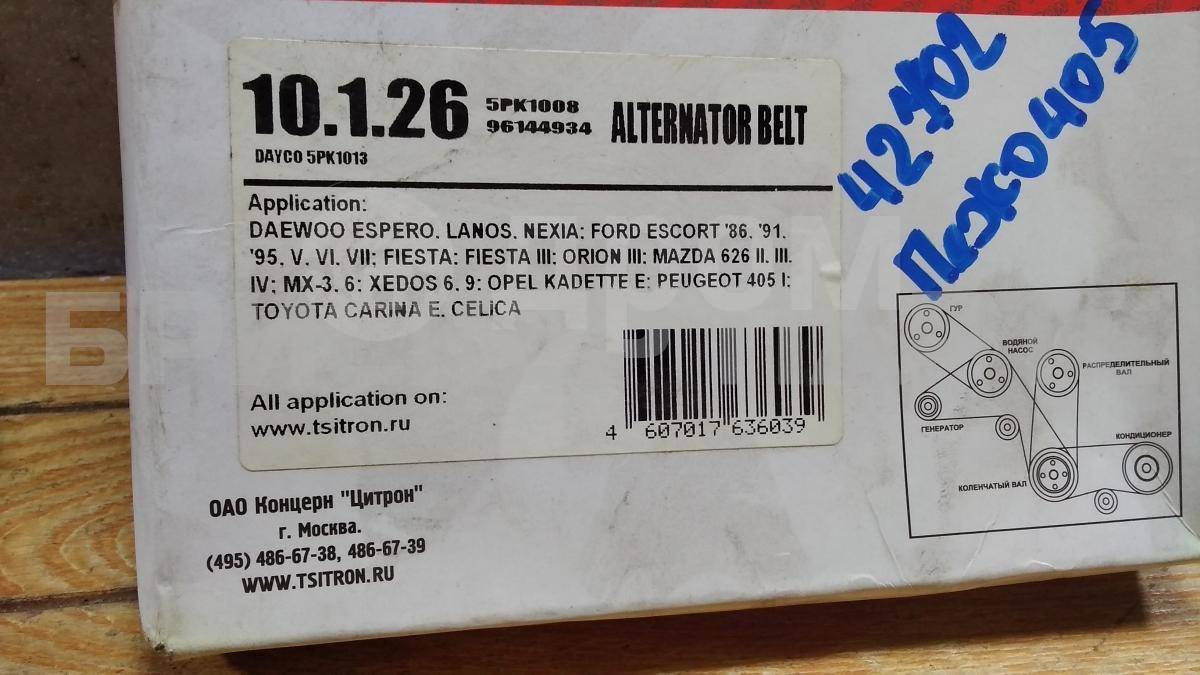 На данной странице нашего каталога представлена деталь «Ремень на Пежо 400 405» , с оригинальным номером 5PK1008, состояние которой оценено нашими специалистами, как «Отличное».