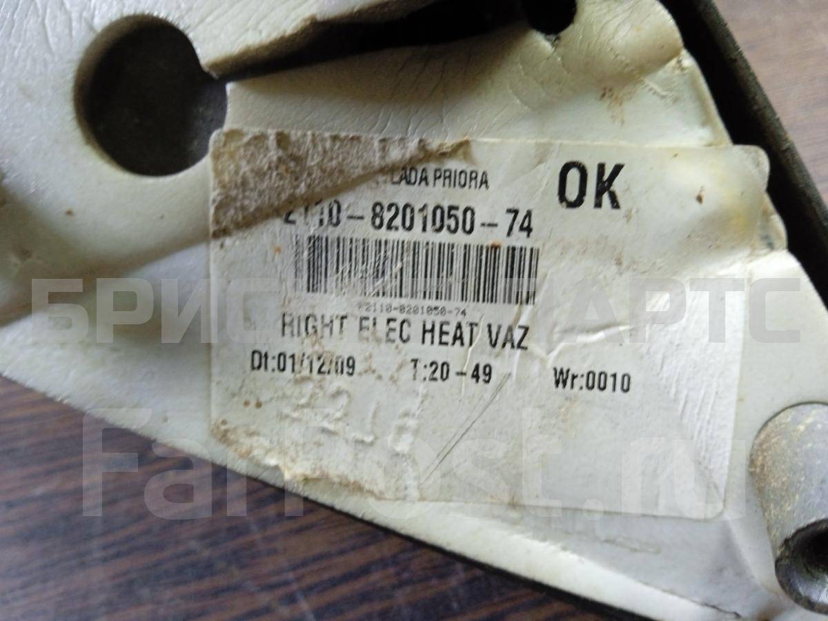 На данной странице нашего каталога представлена деталь «Зеркало заднего вида правое боковое электрическое для ВАЗ Лада Приора » , с оригинальным номером 2110820105074, состояние которой оценено нашими специалистами, как «Нормальное».